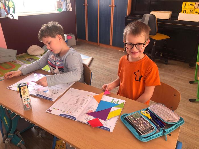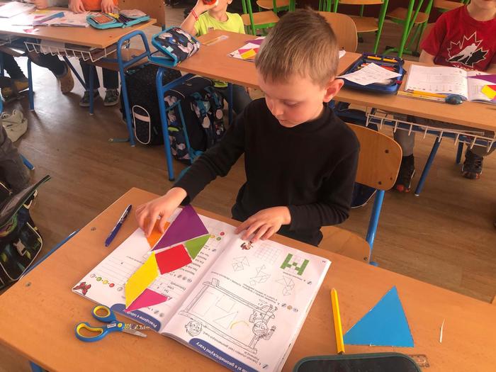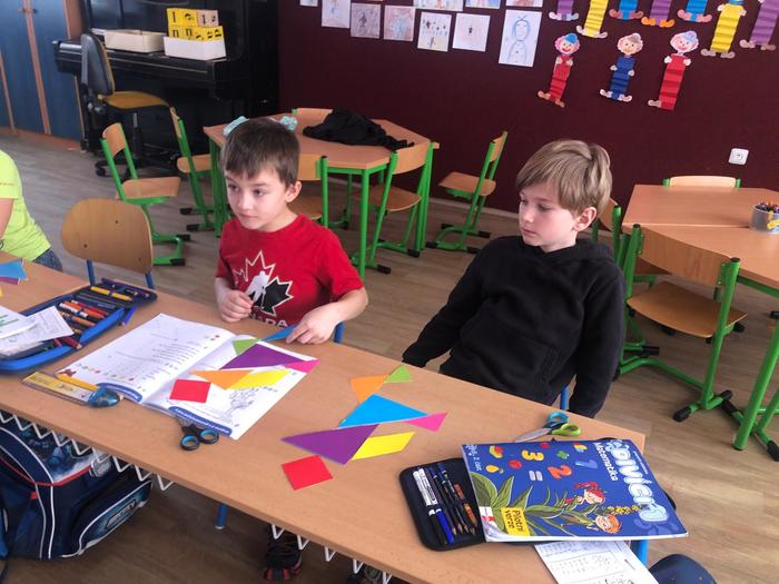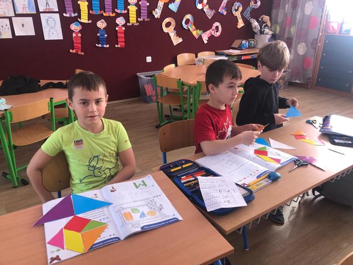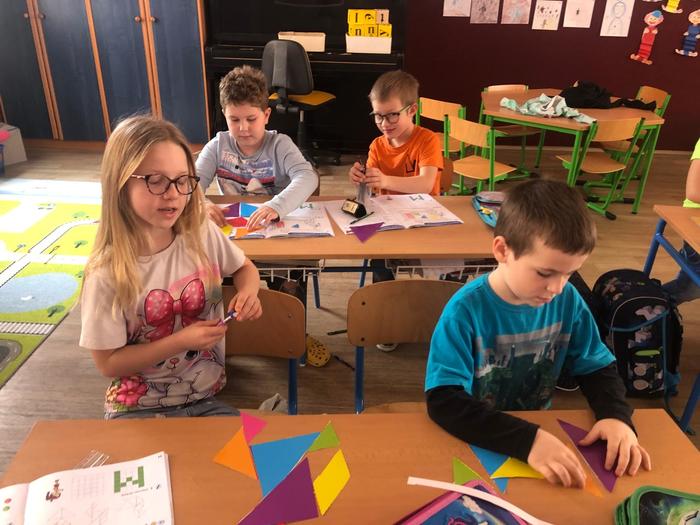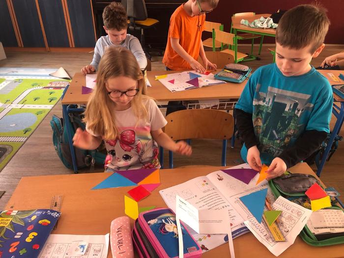 Úvod > Základní škola > Fotogalerie ZŠ > 1. ročník objevuje tangramy